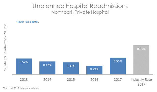 This graph shows that patients admitted to Northpark Private Hospital are less likely to have an unplanned readmission compared with patients in other Australian hospitals.