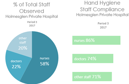 Holmesglen Private Hospital employs a variety of strategies to improve hand hygiene compliance. These include: