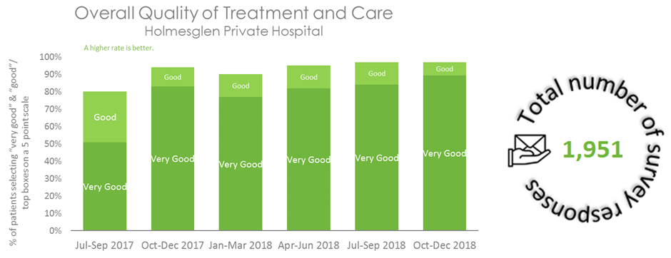 Holmesglen Private Hospital’s survey results are also monitored by the Quality Department at Healthscope Corporate Office. Reports are presented to senior management and the Board.