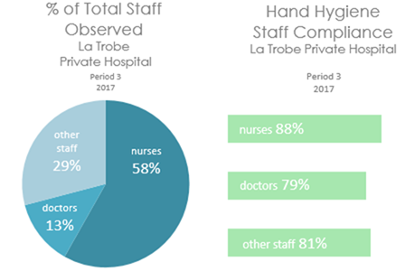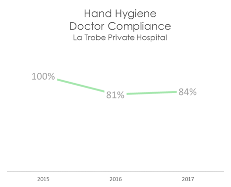 This graph shows that staff at LaTrobe Private Hospital have a high rate of compliance with hand hygiene.