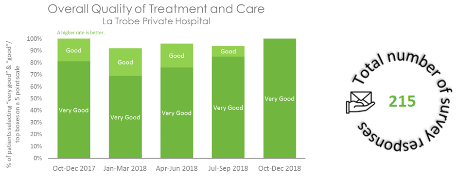 LaTrobe Private Hospital’s survey results are also continuously monitored by the Quality Department at Healthscope Corporate Office. Reports are presented to senior management and the Board.