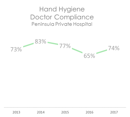 The graph below shows that doctor hand hygiene rates have improved since we introduced public reporting on this website in 2013.