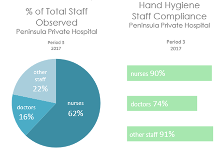Peninsula Private Hospital employs a variety of strategies to improve hand hygiene compliance. These include: