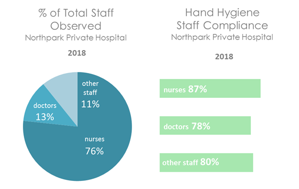 At Northpark Private Hospital, we use auditors who are accredited by Hand Hygiene Australia to record whether or not hand hygiene has been performed correctly.
