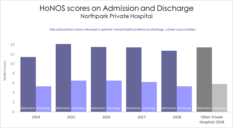 At Northpark Private Hospital, we measure the mental health of patients on admission and again on discharge to see how they are improving. We use the internationally recognised HoNOS (Health of the Nation Outcome Scales), a tool which allows clinicians to assess various aspects of a patient's mental health, such as depression, anxiety or problematic behaviour.