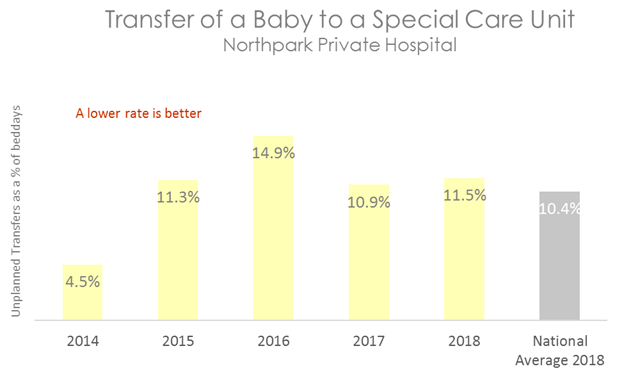 At Northpark Private Hospital, we track the number of babies transferred to Special Care Nursery and Neonatal Intensive Care, to monitor the quality of our care. The right support before and during the birth can help minimise the rate of these transfers, so we are constantly looking at ways to improve.