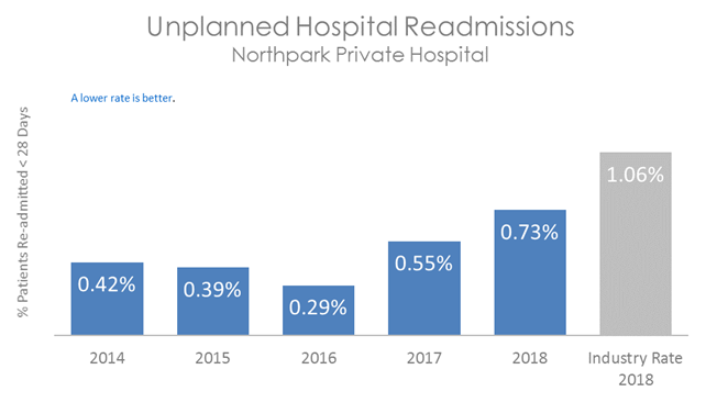 This graph shows that patients admitted to Northpark Private Hospital are less likely to have an unplanned readmission compared with patients in other Australian hospitals.