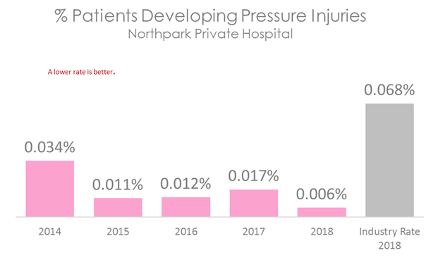 Northpark Private Hospital employs a variety of strategies to minimise the risk of patients developing pressure injuries. These include:
