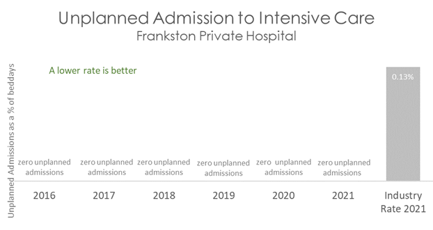 This graph shows that there have been no unexpected admissions to Intensive Care at Frankston Private Hospital in recent years.