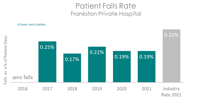 This graph shows that patients at Frankston Private Hospital have had a lower rate of falls than those in other Australian hospitals.