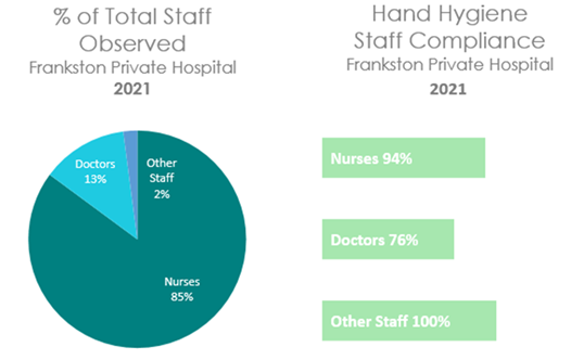 Frankston Private Hospital employs a variety of strategies to improve hand hygiene compliance. These include: