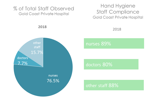 Gold Coast Private Hospital employs a variety of strategies to improve hand hygiene compliance. These include: