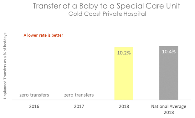 At Gold Coast Private Hospital, we track the number of babies transferred to Special Care Nursery and Neonatal Intensive Care, to monitor the quality of our care. The right support before and during the birth can help minimise the rate of these transfers, so we are constantly looking at ways to improve.