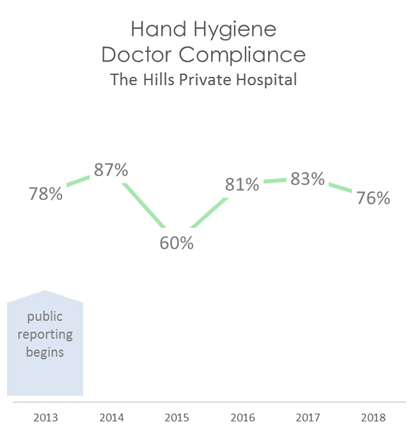 The graph below shows that doctor hand hygiene rates have improved since we introduced public reporting on this website in 2013.