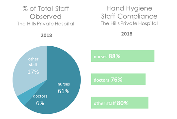 The Hills Private Hospital employs a variety of strategies to improve hand hygiene compliance. These include:
