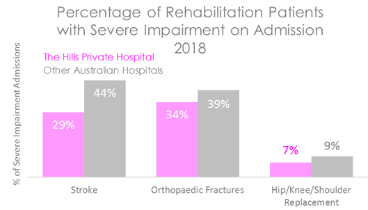 This chart shows that patients at The Hills Private Hospital have less severe impairments on admission than patients at other Australian hospitals.